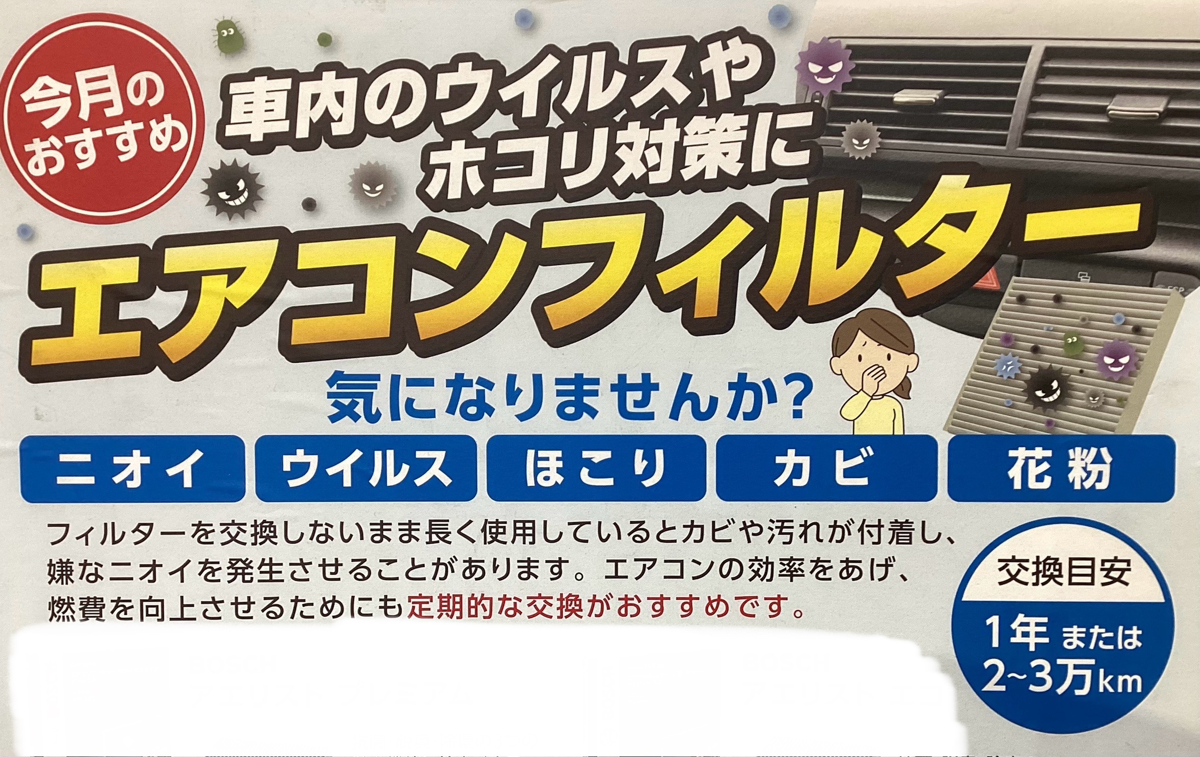 エバポレーター洗浄と併せてエアコンフィルターの交換と車内除菌消臭がオススメ!