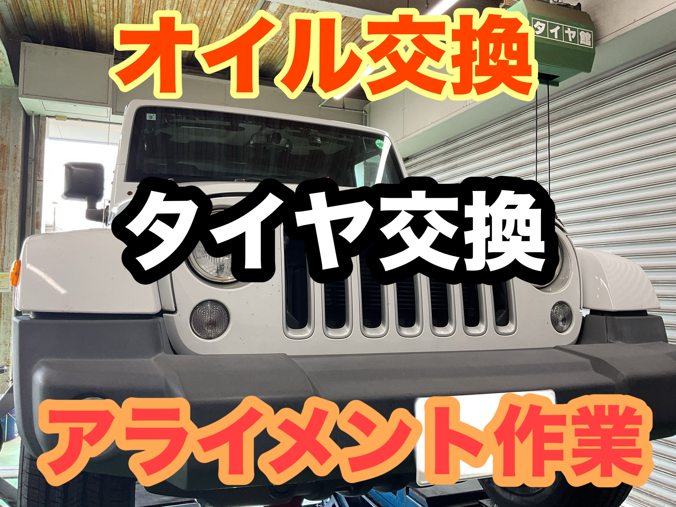 今回はJEEP ラングラー タイヤ交換 アライメント調整 オイル交換!