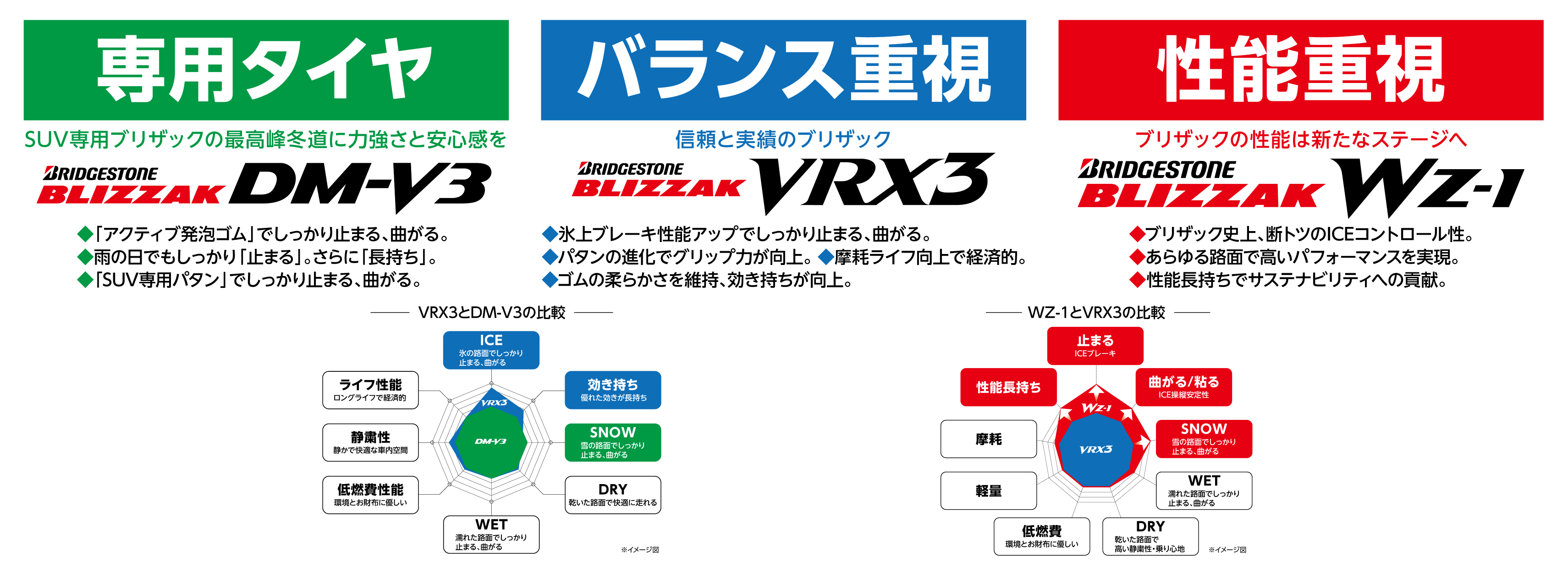 これらの進化した3つの特長で冬道のさらなる安心・安全を支えます!!