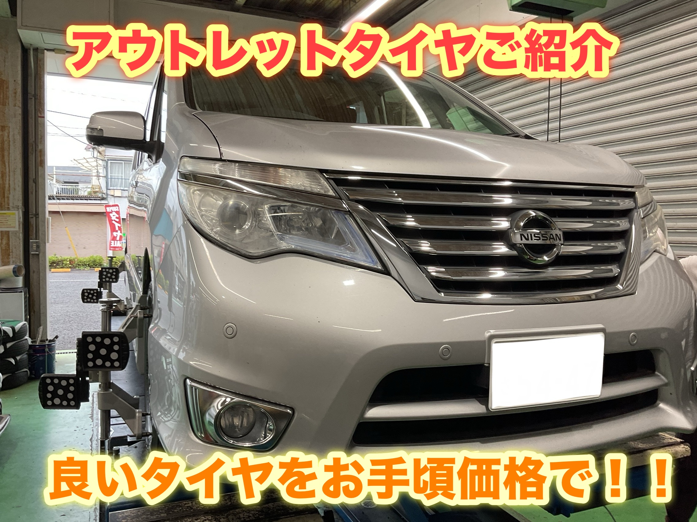 今回はNISSAN セレナ タイヤ交換&アライメント調整を実施