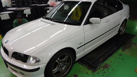 ②BMW3(E46)こちらは夏タイヤの交換です。新車装着時からの純正タイヤを12年ぶりに交換!かなりヒビ割れすごかったです。通常タイヤの交換サイクルは、3~4年が一般的ですから、本来なら3~4回交換してたはずなんですが・・・・。