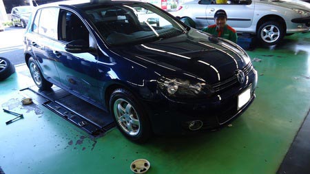 ①ゴルフ6 スタッドレスタイヤの履き替えです。