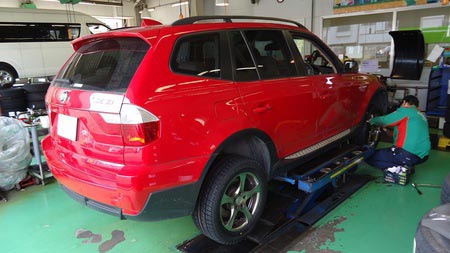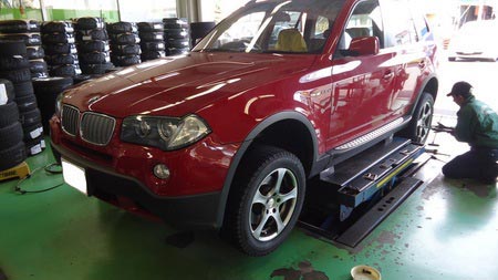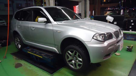 BMW X3(E83)が2台スタッドレスタイヤへの交換。X3(エックススリー)を業界用語で(バツサン)と呼びます。TV業界だとタクシーを”シータク”みたいなヤツ(笑)