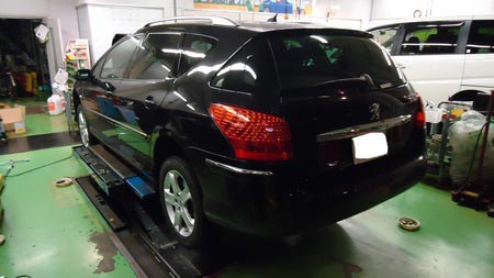 スタッドレスタイヤの交換です。レアなホイールサイズの為、アルミホイールは取り寄せです。PCDは5穴 108mm。プジョー専用です。