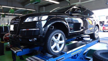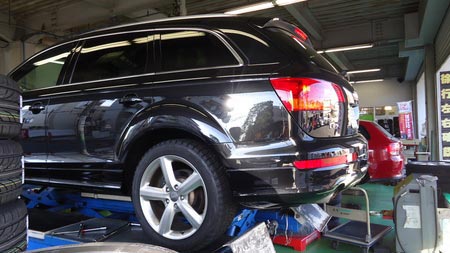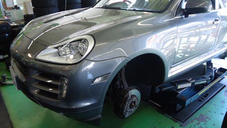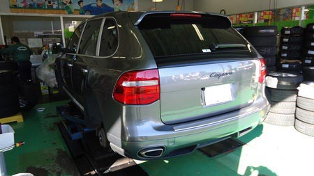 ①ポルシェカイエン。ポルシェ社のドル箱カーです。さすが中東の石油王が好むだけあってゴージャスです。こちらもエアサス車。ジャッキアップモード必須です。西荻窪店ではポルシェカイエンが数多く来店します。タイヤ重いので結構ツラいんですけどね・・・・!