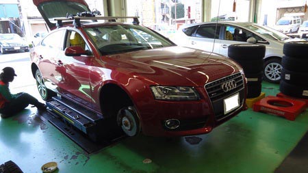 アウディA5スポーツバックにスタッドレスタイヤ取り付けです。