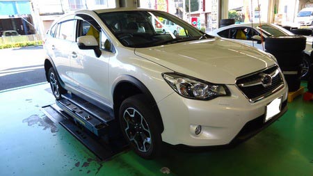 ①スバルインプレッサXVにスタッドレス取り付け。