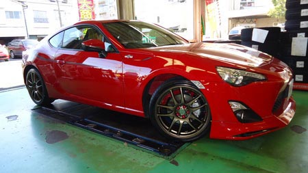 18インチにインチアップ。しかもタイヤはポテンザS001の86専用スペック。ヨーロッパ規格のXLタイヤではなく、86専用にチューニングされたタイヤです。これはイイ!乗り心地、グリップ、操縦安定性、どれをとっても最高のコンディション。