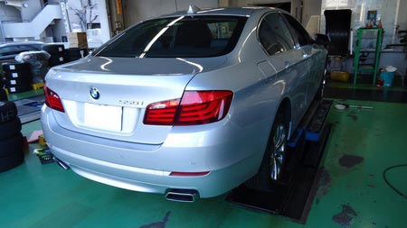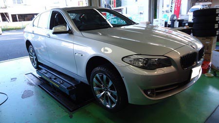 最新の5シリーズ。550i。スタッドレスタイヤ取り付けです。