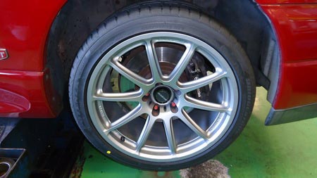 スカイラインGT-R(BCNR33)アルミホイール取り付けです。