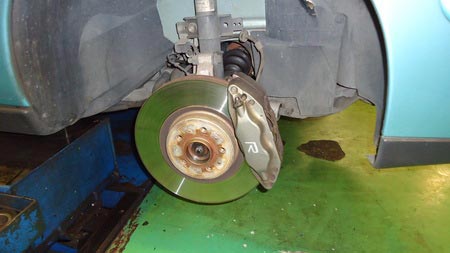 高性能な車もブレーキを踏んで大きい円盤(ブレーキローター)を挟んで、最後はタイヤのグリップ力で制動しないと止まりません。タイヤと同じくらい重要なのがブレーキです。それも大きさ。大きい円盤の方がより接触面が多いので強大なストッピングパワーを得られます。大は小を兼ねるとは正にこの事。