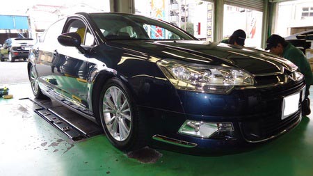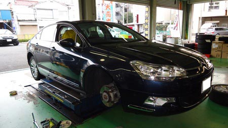 レア車来ました。シトロエンC5。スタッドレスタイヤ取り付けです。