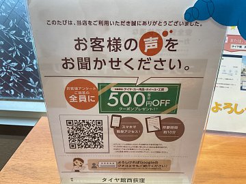 日頃より当店をご利用していただき、誠にありがとうございます。 タイヤ館では、お客様がご利用しやすいように アンケートのご協力をお願いしております! 今回はその中から『タイヤの匂いが気になる為、出来れば休憩スペースのタイヤ展示撤去を希望』 貴重な意見をありがとうございます! タイヤの...
