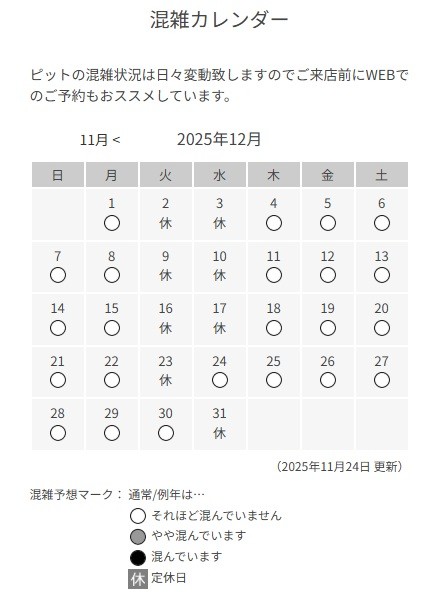 ↓は混雑カレンダーです。