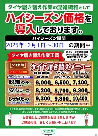 12月より末までの間脱着料金をハイシーズン価格とさせて頂きます。 ⇩⇩詳しい情報はこちら⇩⇩ ご予約はこちらから⇒ご予約ページ