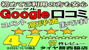 タイヤ館 西脇店です! 当店は多くのお客様に高評価・レビューを頂いております。 あえて表に出すのは、タイヤ館西脇は 女性1人からでも気軽に入店できる、アットホームなお店だと 知って頂きたいからです☆ スタッフ紹介はこちら 当然、専門店のならではの点検や・サービスを受けて頂く事が出来ます...