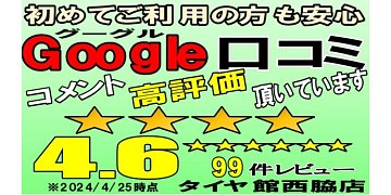 タイヤ館 西脇店です! 当店は多くのお客様に高評価・レビューを頂いております。 あえて表に出すのは、タイヤ館西脇は 女性1人からでも気軽に入店できる、アットホームなお店だと 知って頂きたいからです☆ スタッフ紹介はこちら 当然、専門店のならではの点検や・サービスを受けて頂く事が出来ます...