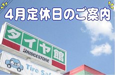 4月の定休日のお知らせ
