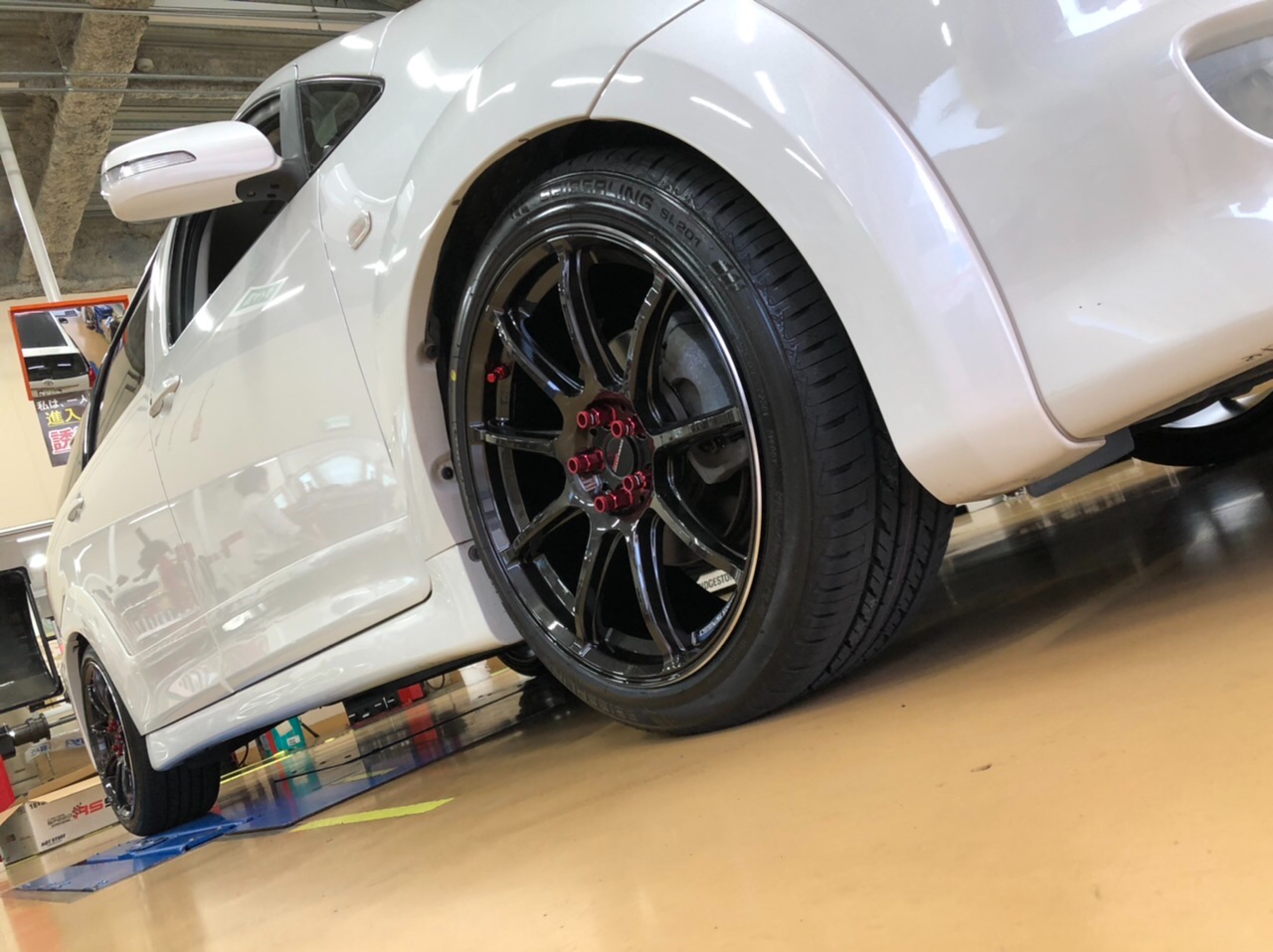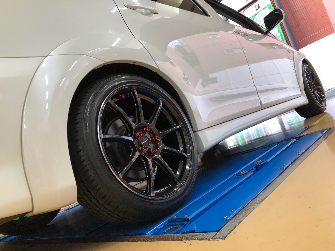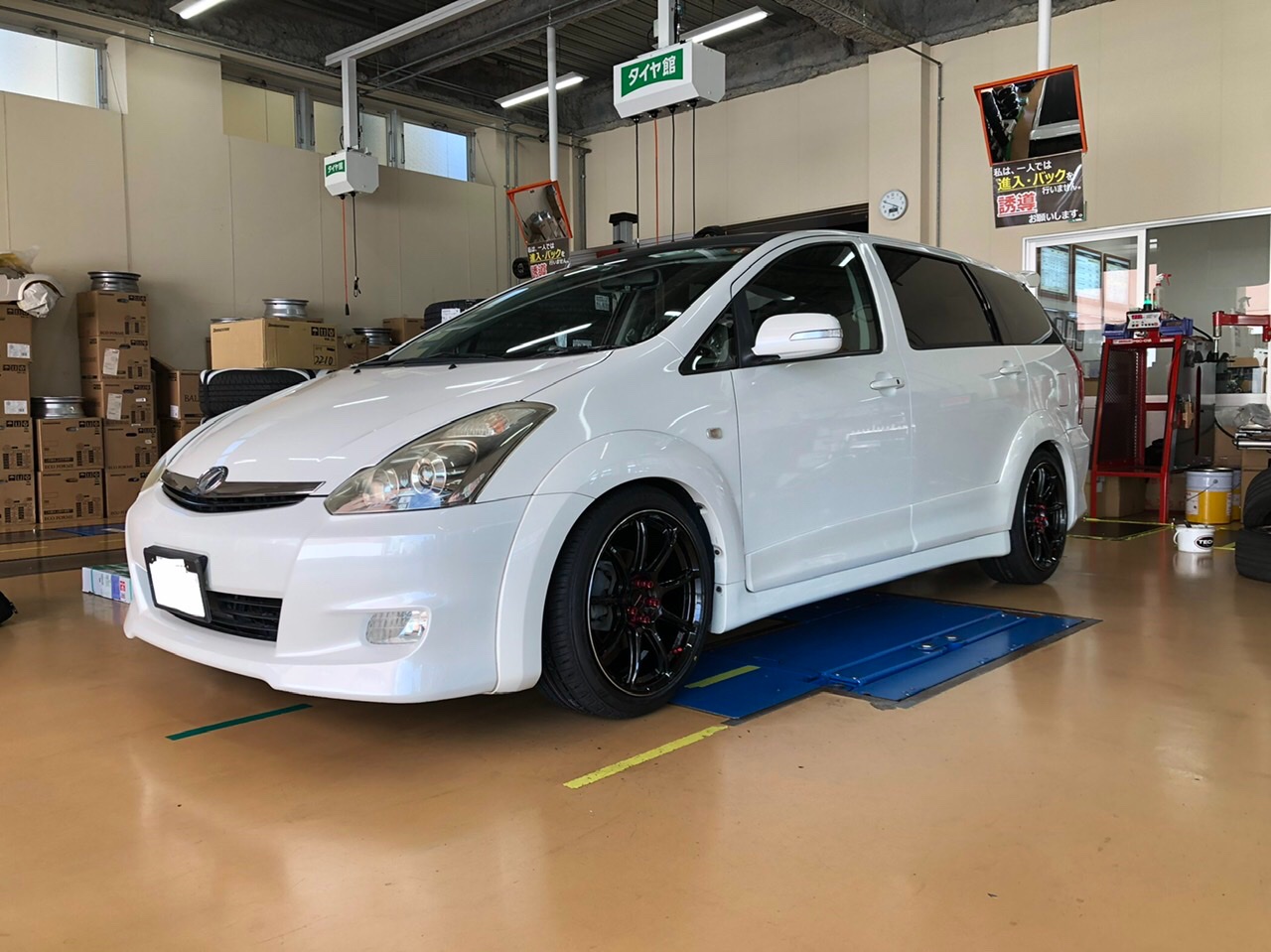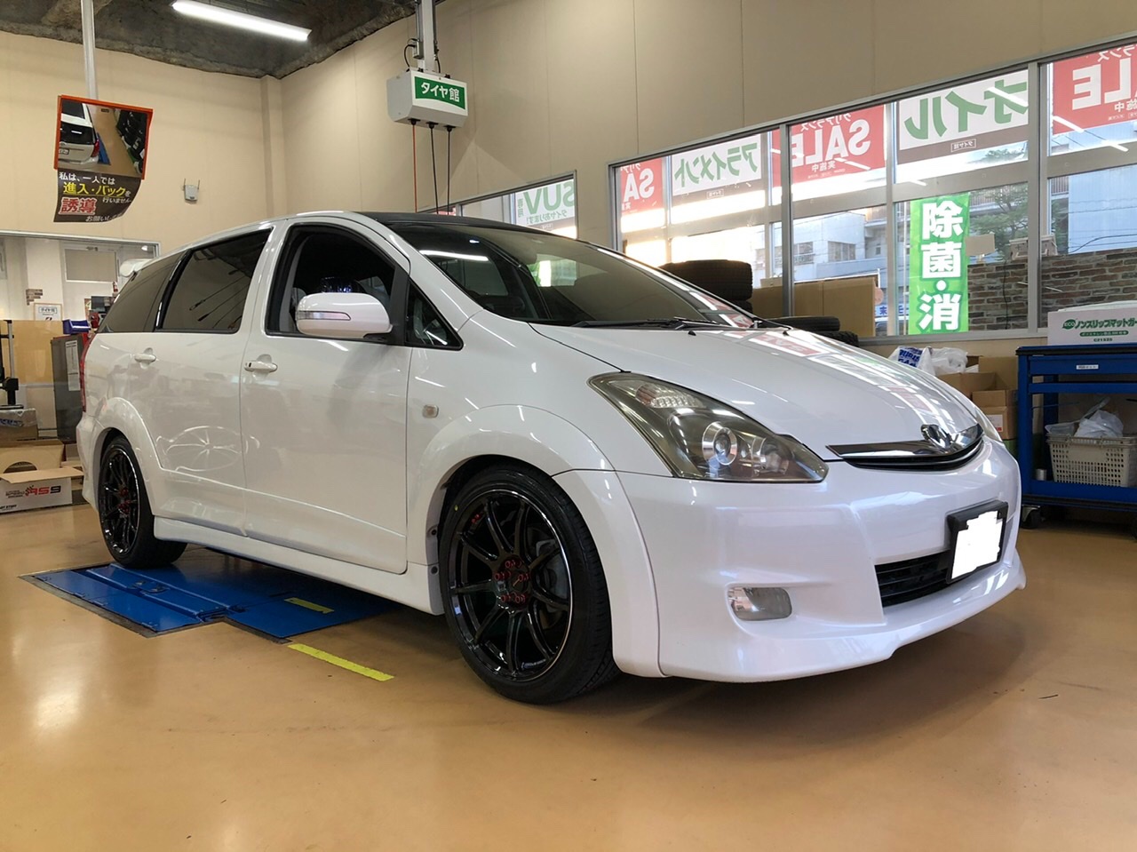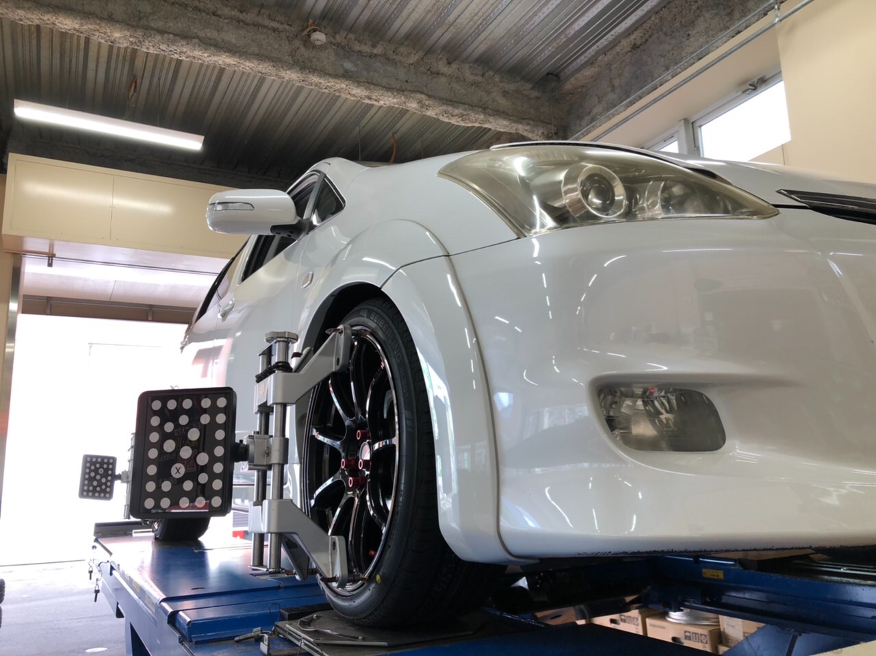 ウィッシュでタイヤホイール交換、アライメントです。