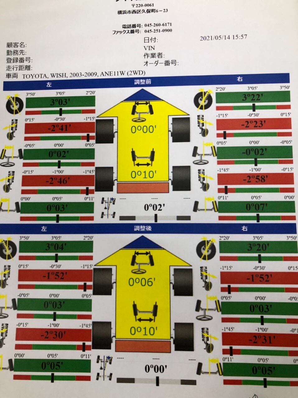キャンバー調整です。調整後のデータです。