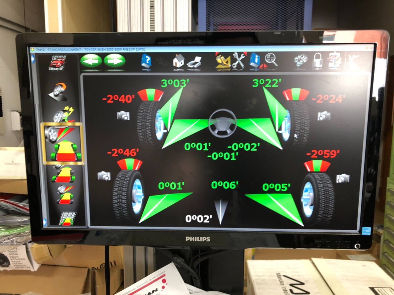 フロントトゥはおなじみのタイロッド調整と