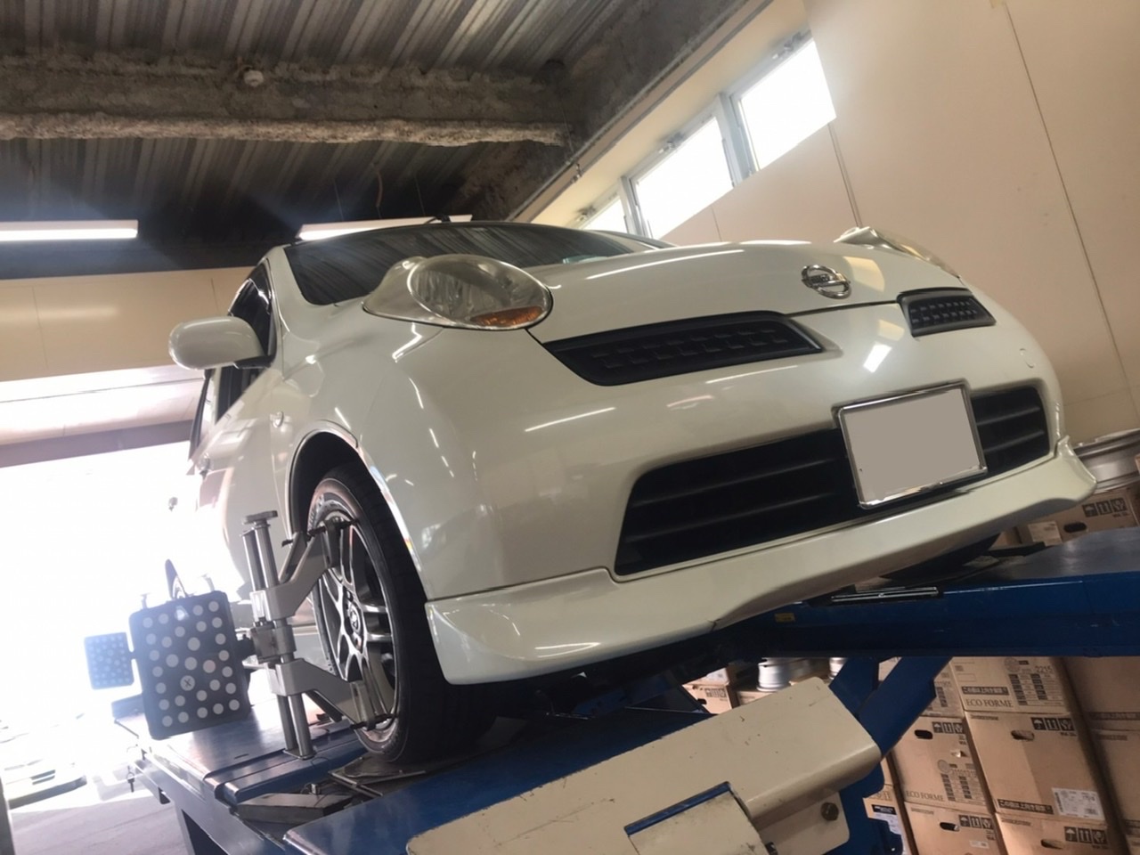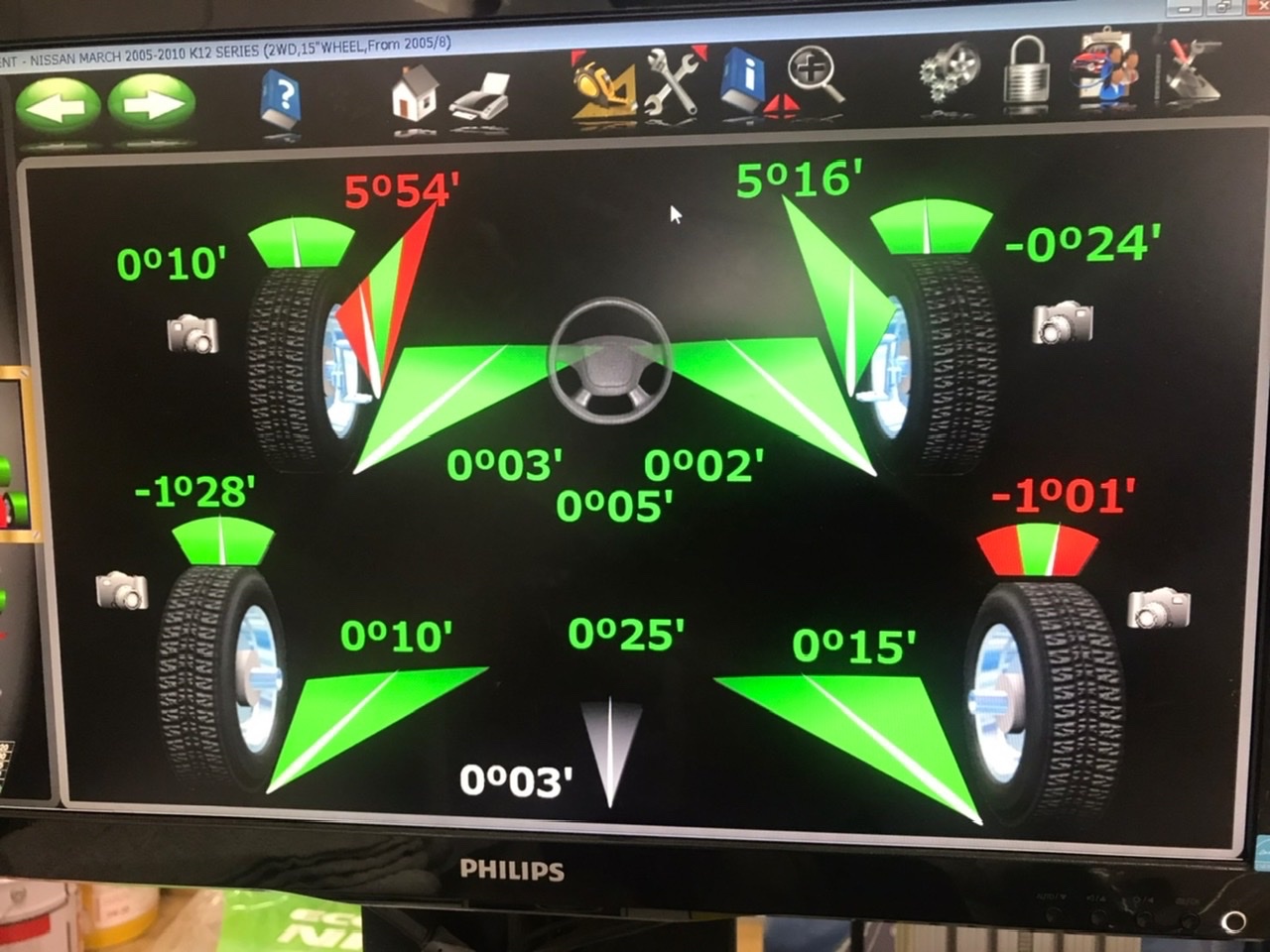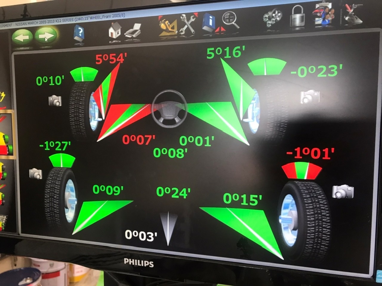 マーチでアライメント調整です。 ポスト 2022年3月18日 日産のコンパクトハッチ マーチでアライメント調整です。 調整前のデータです。 左のフロントトゥが基準値より外れてます。 調整箇所はこちら フロントはタイロッドでの トゥ調整です。 調整箇所はフロントのみなので サクッと調整します。 トゥは基準値に入り 綺麗になりました。 いつも通り試走に出て 作業完了です。 ご来店ありがとうございました。 カテゴリ:その他 ホイール関連