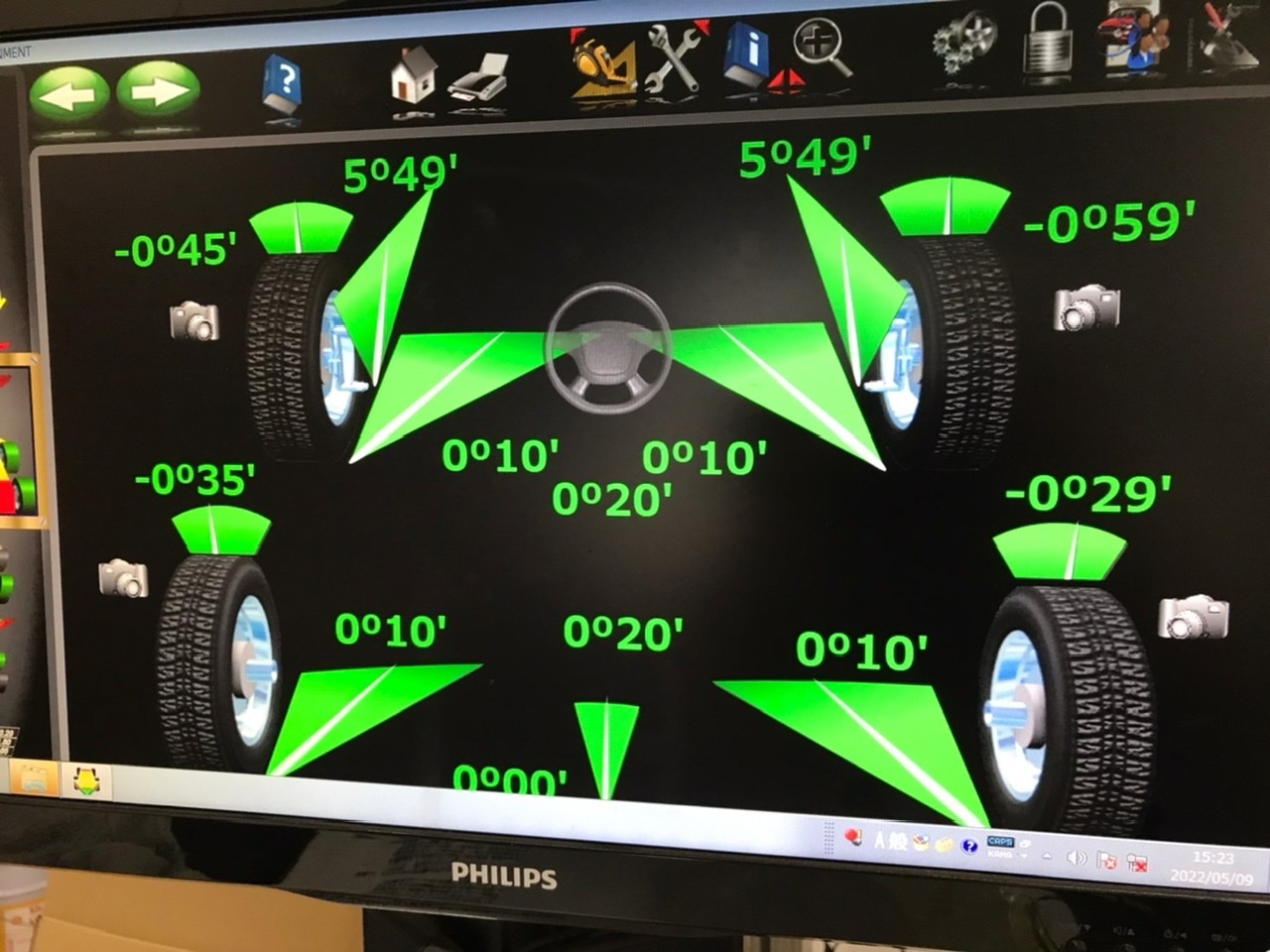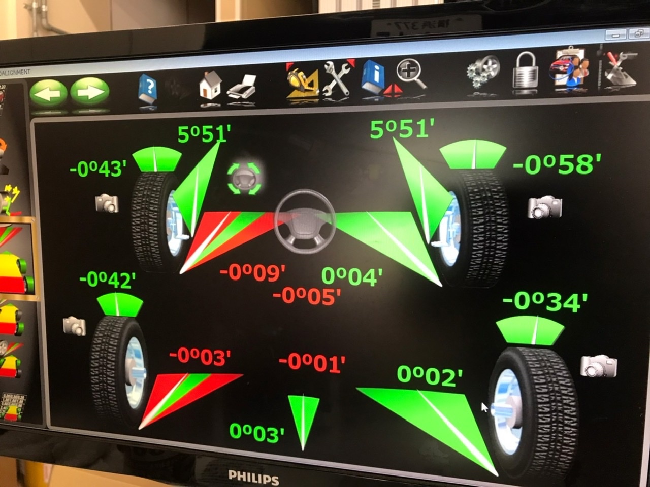 ボルボV90でアライメント調整 ポスト 2022年6月1日 ボルボV90で アライメント調整です。 調整前のデータはこちら フロント、リアともに左のトゥが基準値外です。 フロント調整箇所はこちら タイロッドによるトゥ調整です。 リアは偏芯カムによる トゥ調整になります。 調整後のデータです。 前後トゥの左右差はなくなり 全体的に綺麗な状況になりました。 最後に試走に出て ハンドルセンターの確認です。 ご来店ありがとうございました。 カテゴリ:その他 タイヤ関連