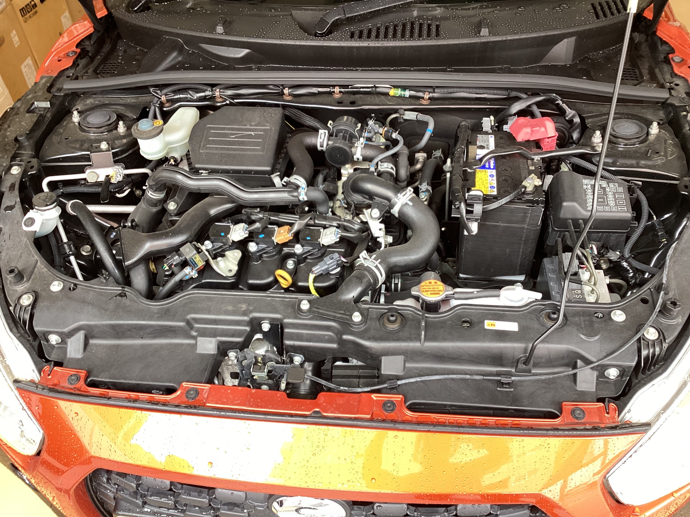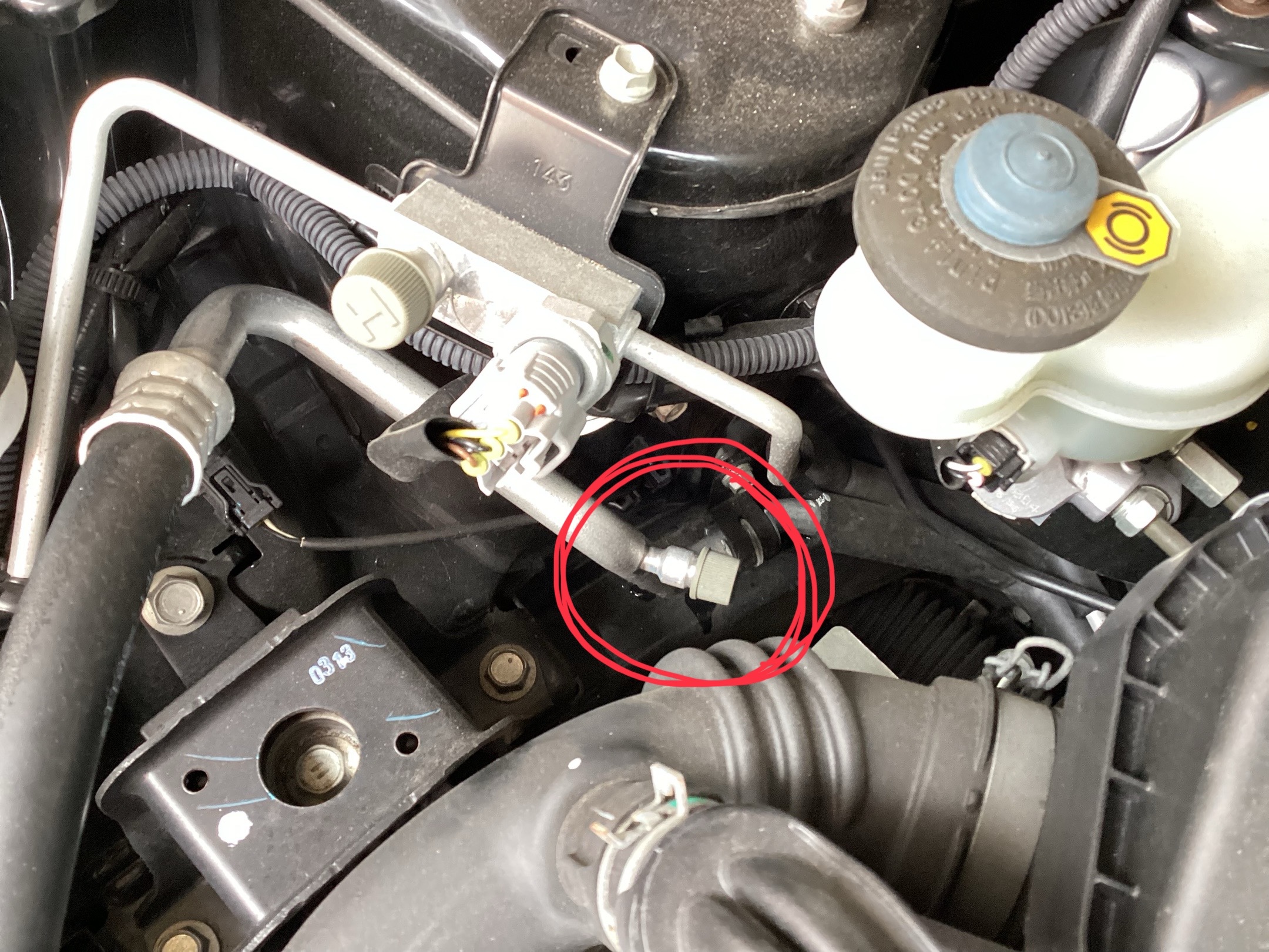ボンネット内の低圧のホースを探します。