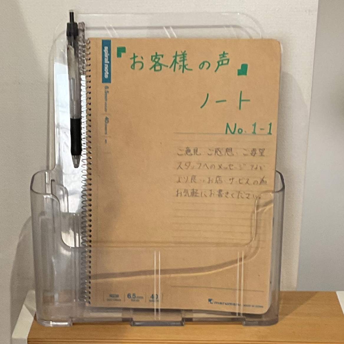 ※「お客様の声」ノートは給茶機横と喫煙所に設置しております