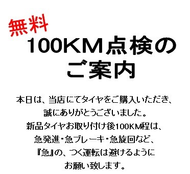 新しくタイヤをご購入の際は、100km点検をよろしくお願いいたします。