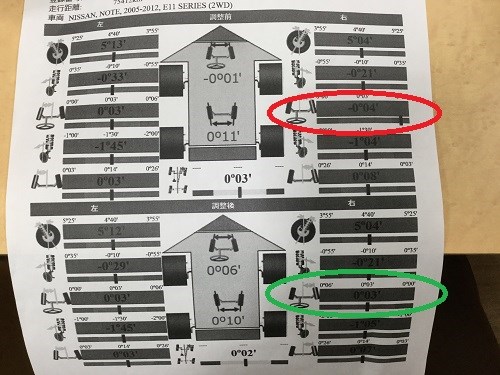 日産 ノート タイヤ交換 アライメント調整