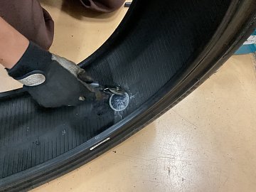 お困り事相談、パンク内面修理 内面修理剤を使って修理中 空いた穴もしっかりブロック! パンク修理出来ないケースもあります。 (実際に確認が必要となります) まずはお電話でお問い合わせ下さい。