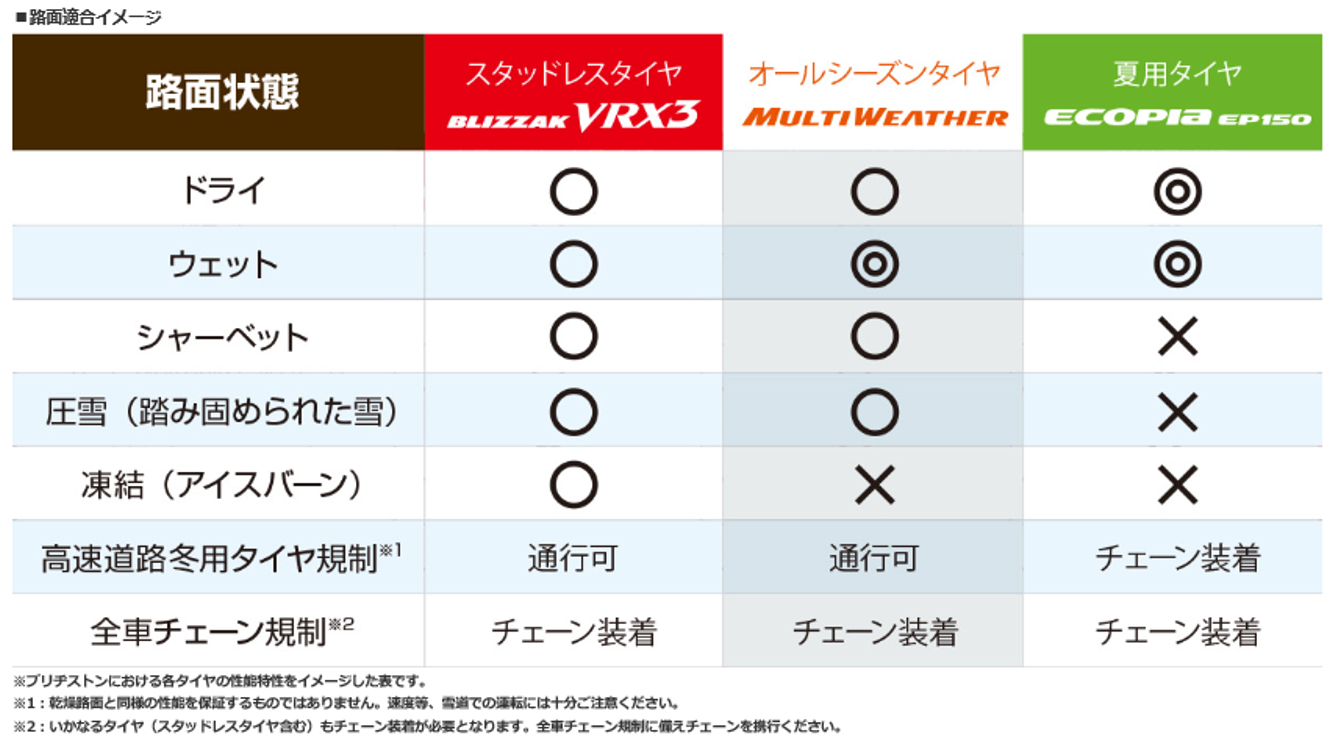 夏タイヤと同等の