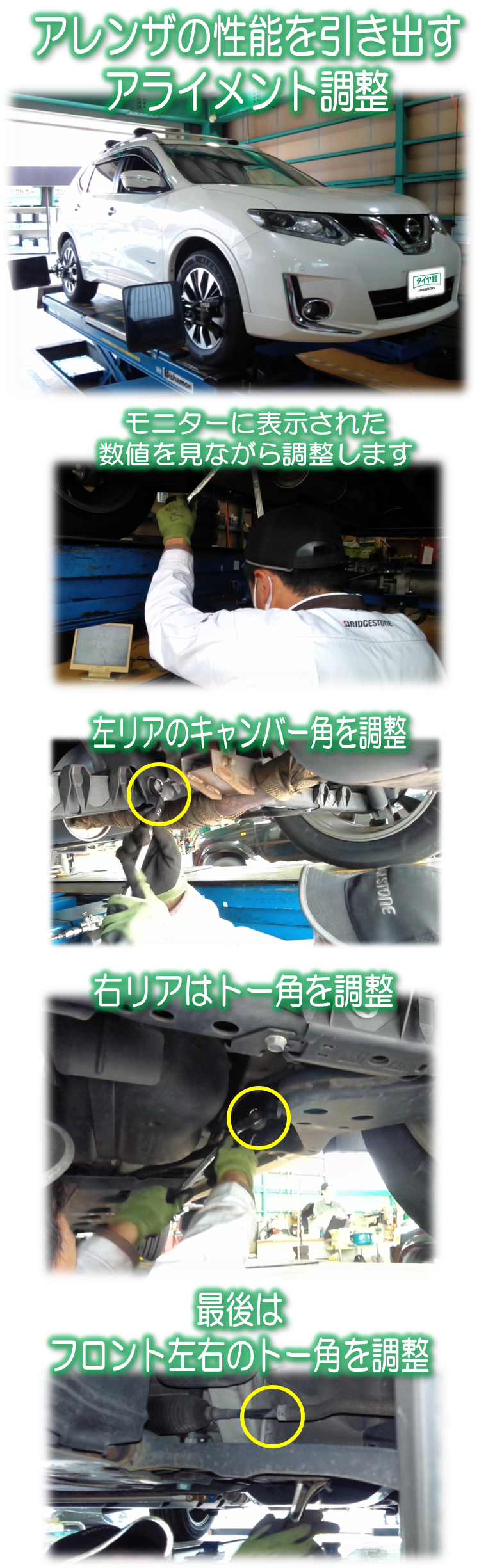 タイヤ交換・スタッドレスタイヤ・アライメント調整・アルミホイール・サスペンション