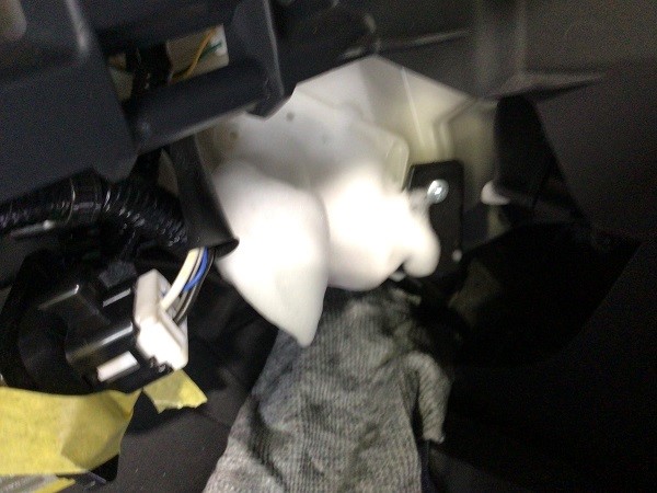 本来はエアコンの排水ドレンから洗浄剤を注入しますがこのスペーシアはドレン形状が特殊のため