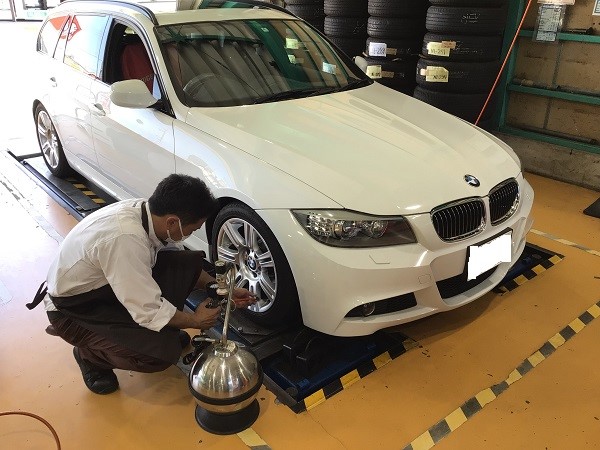 本日は、BMW3シリーズツーリングのアライメント調整作業のご紹介です!