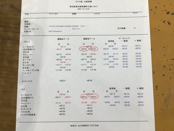 【トヨタ】【アルファード】 アライメント調整
