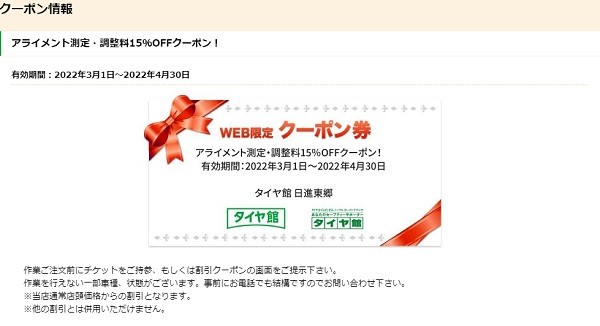 なんと4月中はアライメントの割引があります!