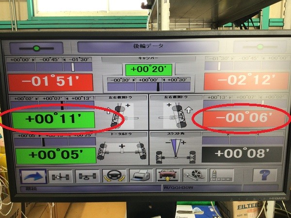 前後左右のタイヤが基準値でそろいました。