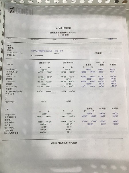 【スバル】【フォレスター】タイヤ交換&アライメント調整