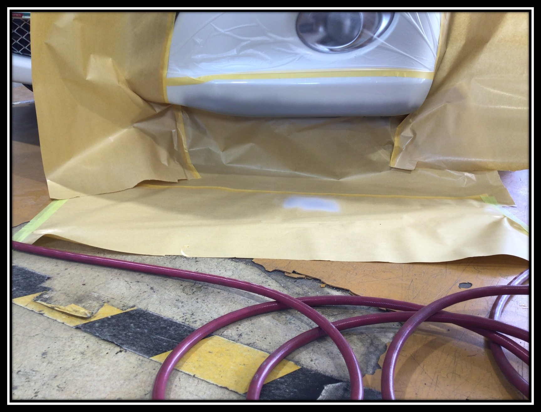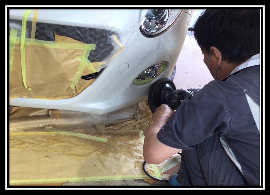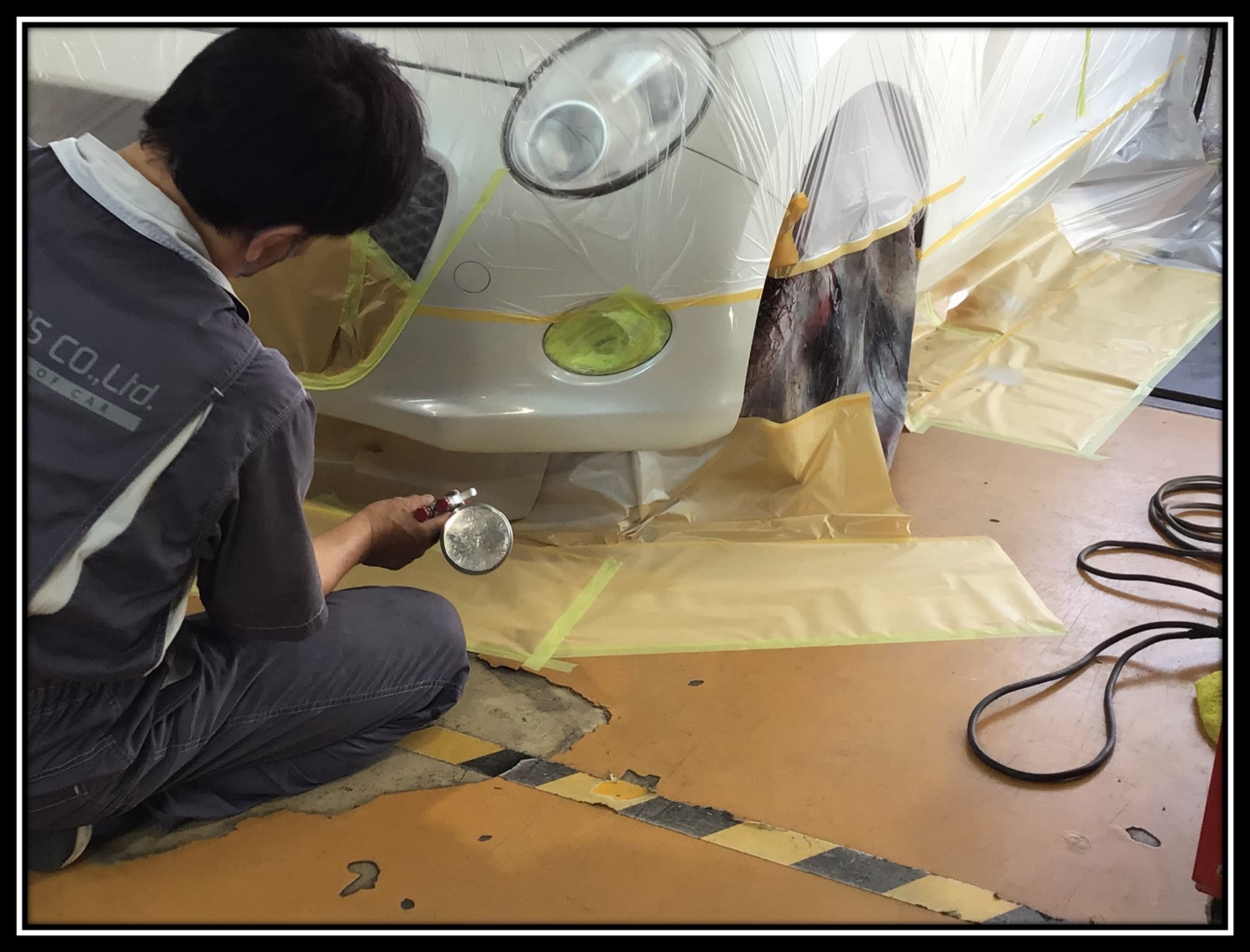 ここからは塗装を行ってきます。車体に合った色の塗料を使用することで修理箇所の色を整えていきます。