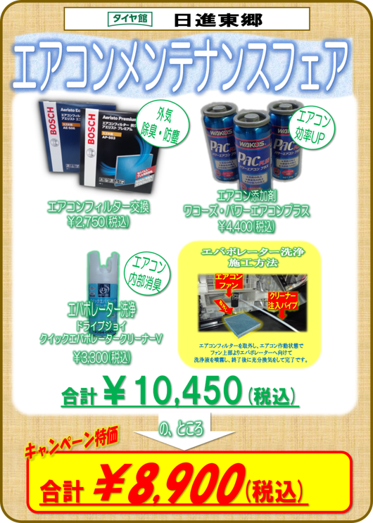 エアコンフィルター交換・防錆コーティング・ヘッドライトコーティング