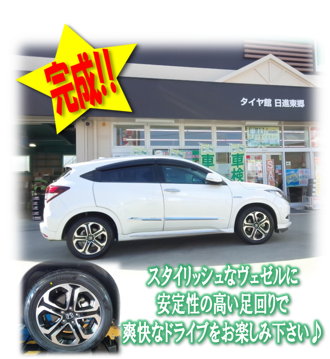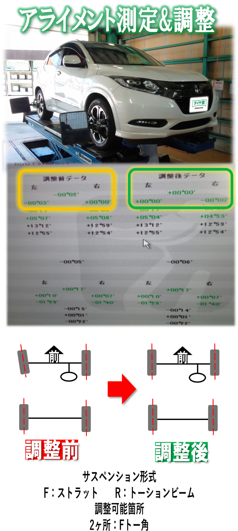 【直進安定性追求!!】ホンダヴェゼルのタイヤ交換&アライメント調整