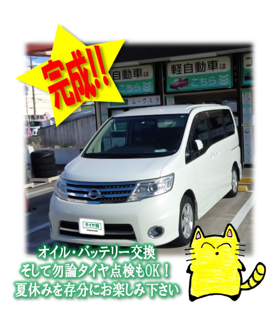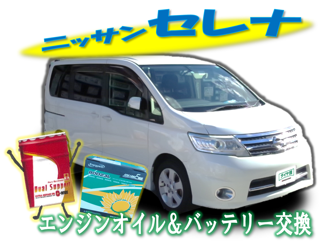【タイヤ館でメンテナンス】日産セレナのオイル交換&バッテリー交換