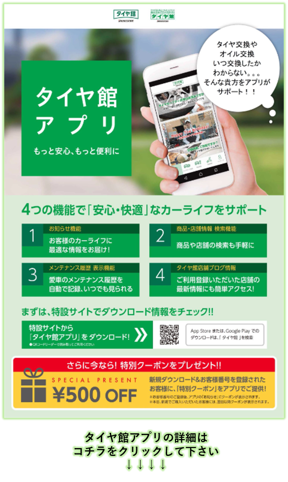 タイヤ館アプリにご加入いただければ