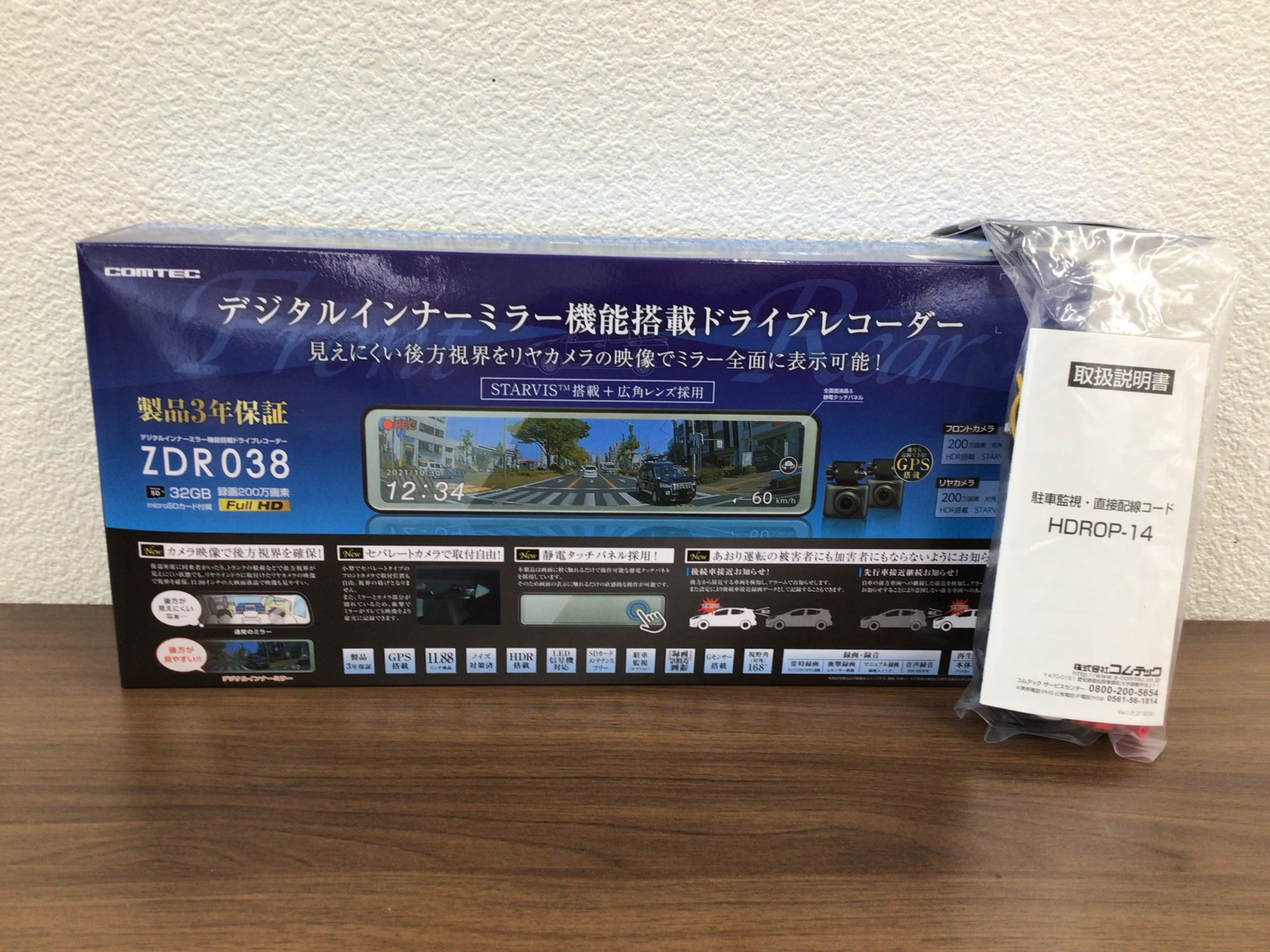 今回はコムテック製「デジタルインナーミラー機能搭載前後2カメラタイプのZDR038」を取付します。
