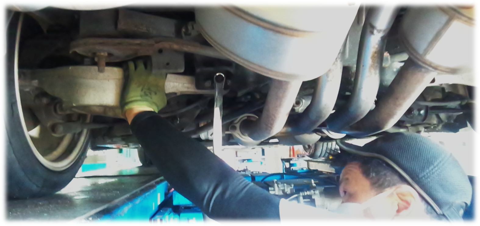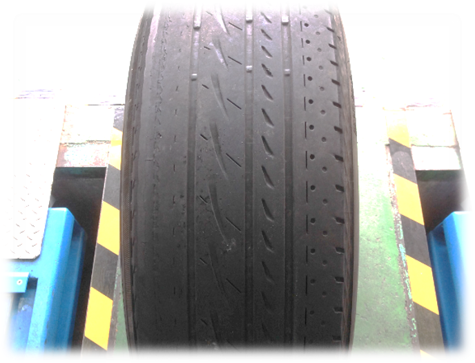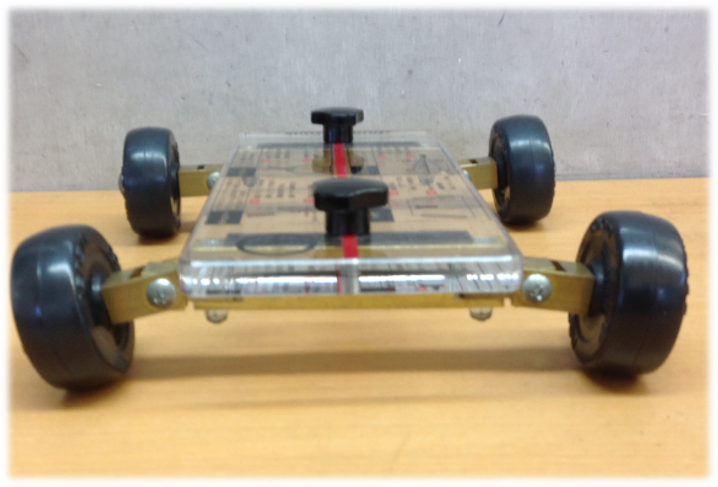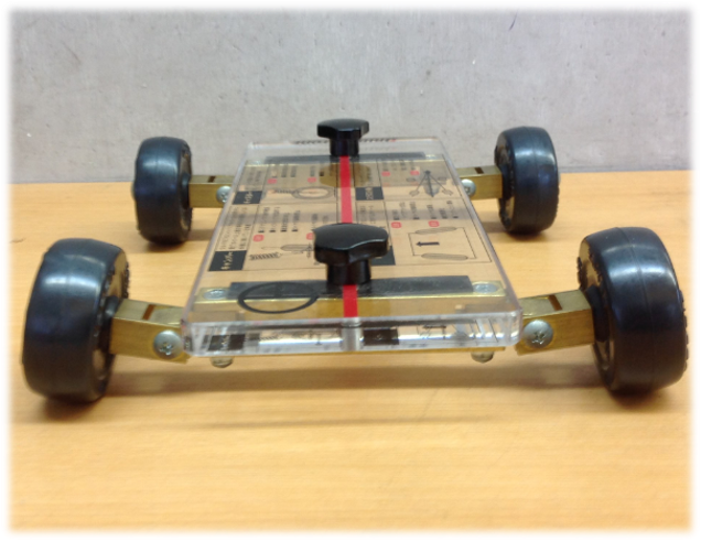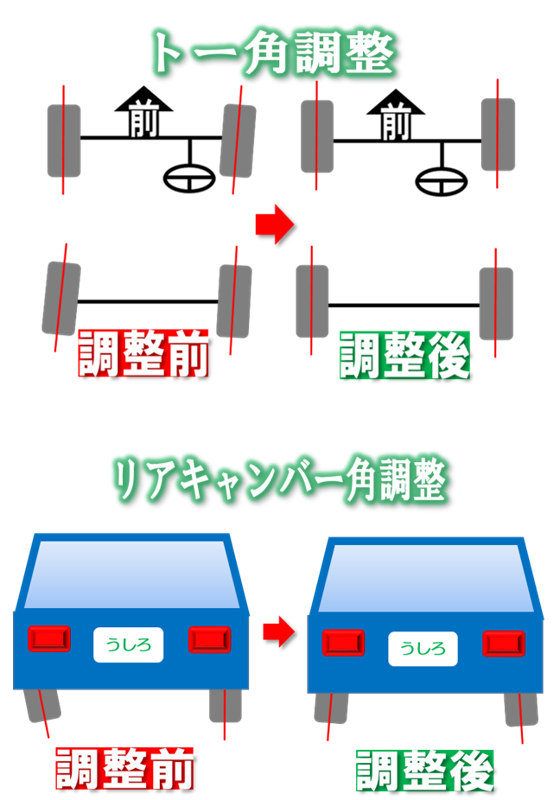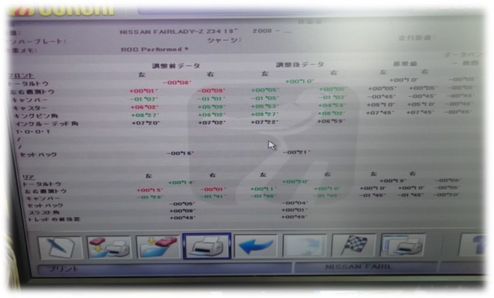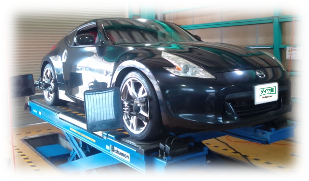 4輪にセンサーを取り付けて、車輪の取り付け角度を計測します
