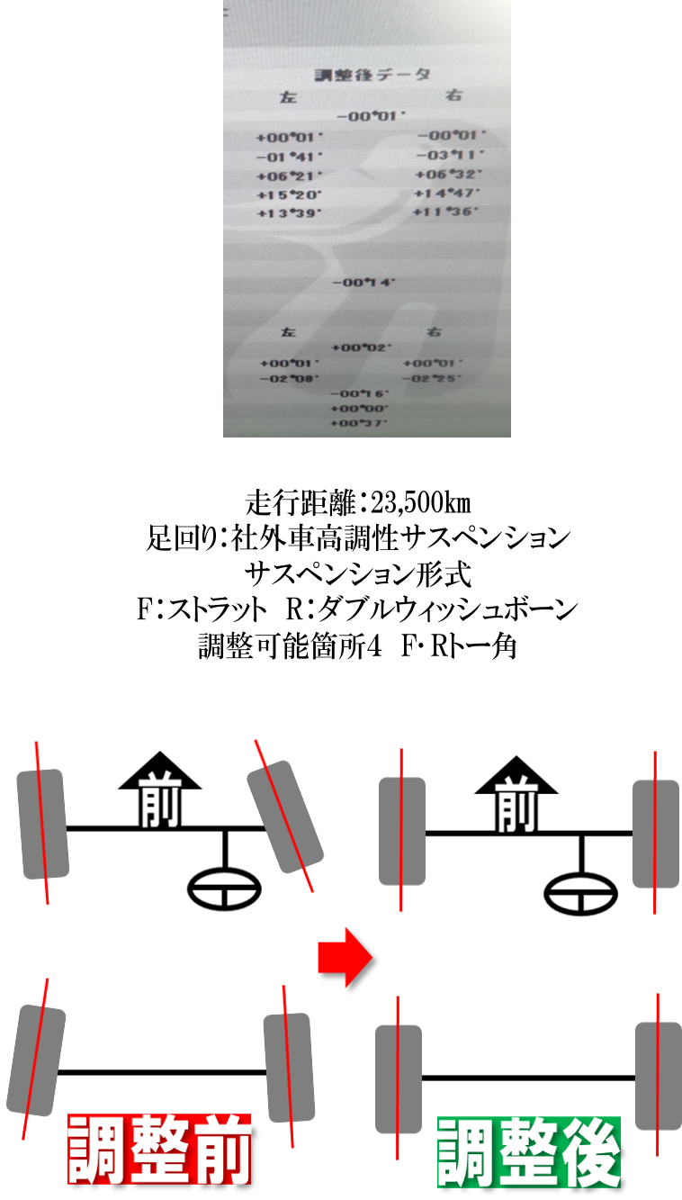 トヨタGXPA16【GRヤリス】のアライメント調整