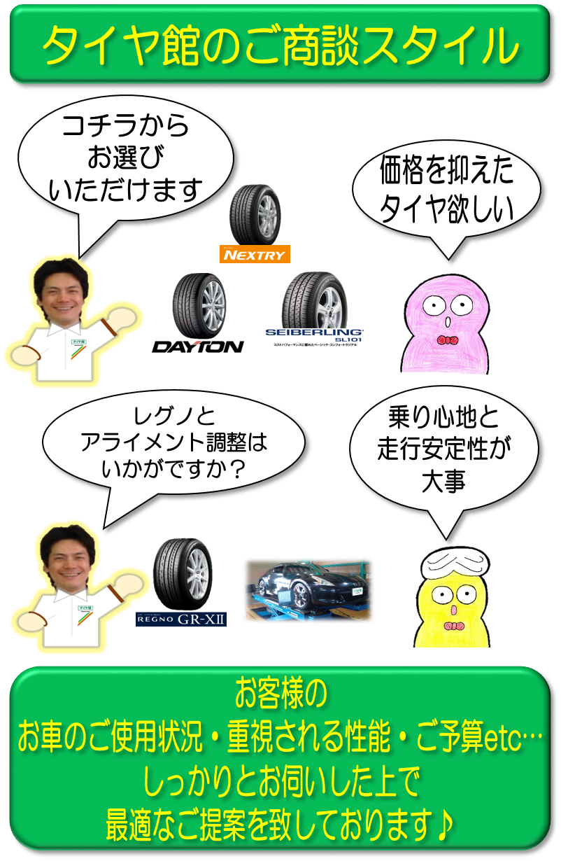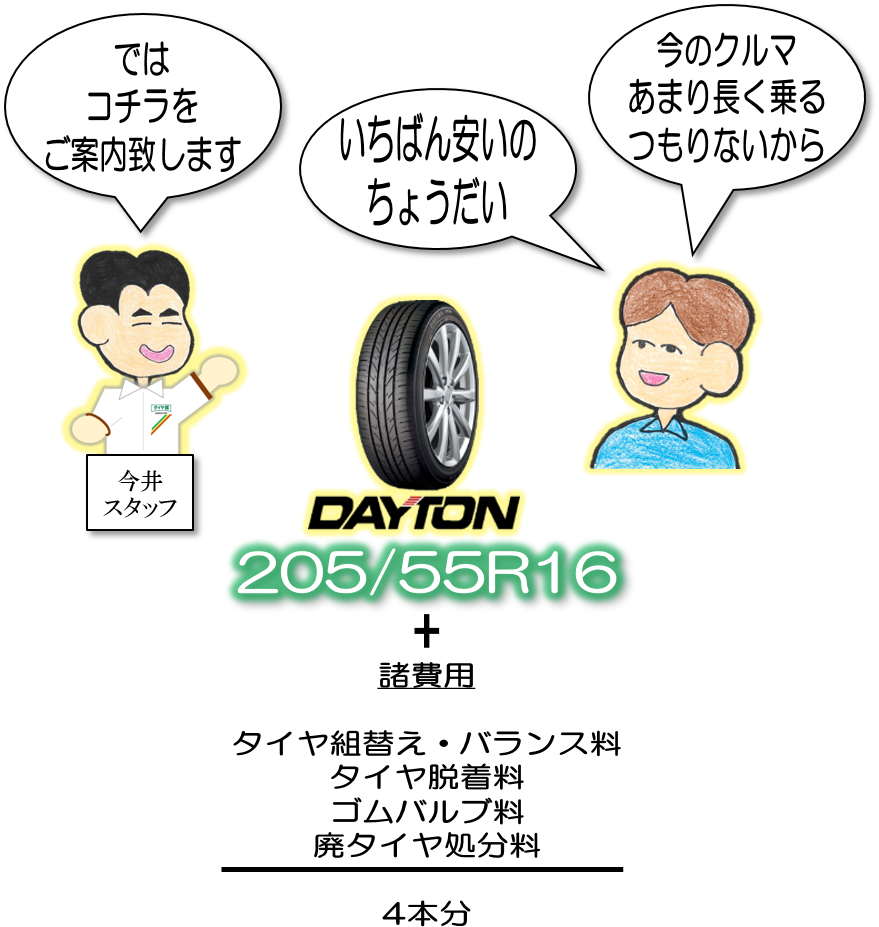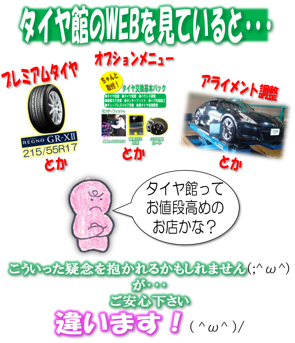 「タイヤ館に行くとイロイロ買わされるのかっ?」