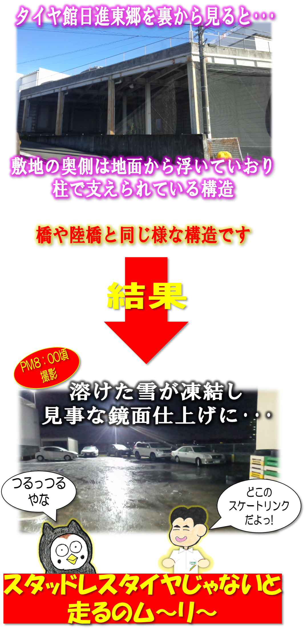【地熱が無いと凍ります】「やっぱスタッドレス必要だわ!」